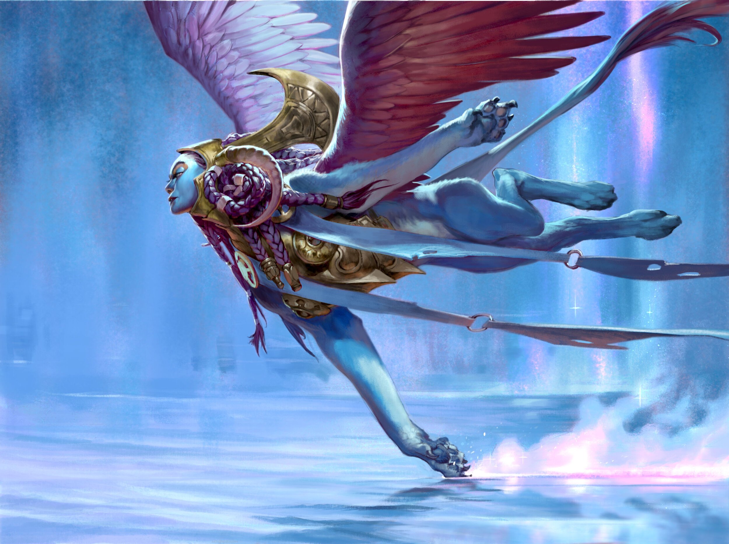There is perhaps no other evergreen keyword in the history of Magic the Gathering that has a greater association with the guilds, as Flying does to Azorius. Ciel Collins pointed out in their analysis of draft archetypes from 2012 to 2024, that a staggering 10 Azorius archetypes were flyers. Flying is the premier evasive mechanic in Magic the Gathering. Its strength is identifiable early on by players just beginning when they first swing in with a Wind Drake for the first time in their beginner box, and are key elements of cards that define Magic as a game, case in point Serra Angel. As one astute redditor pointed out, it's the only evergreen keyword that necessitates the existence of another, simply to counter its strength. Reach does, in and of itself, essentially say "blocks flyers".